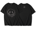 Son design percutant met en scène un smiley dégoulinant, à la fois fun et dérangeant, symbole d’une génération qui joue avec les codes.