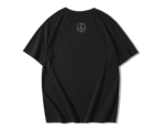 À l’opposé, le symbole ☮ au dos renvoie à la contre-culture des années 60 — paix, liberté, résistance. Minimaliste, presque effacé, il agit comme un rappel silencieux au milieu du chaos.