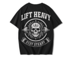 Le message “Lift Heavy – Stay Steady” est bien plus qu’une phrase imprimée : c’est une philosophie de vie. Soulever lourd, oui, mais sans jamais perdre son équilibre. C’est une leçon de patience, de contrôle et de force intérieure. Ce t-shirt oversize te rappelle que la véritable puissance réside dans la régularité — dans la constance de chaque effort répété.