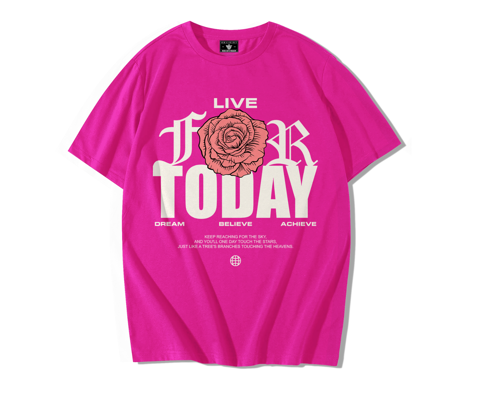Le visuel du Bloom Today Oversize Tee met en avant une rose rouge centrale, symbole universel de la passion et de l’intensité. Associée aux mots massifs Live For Today, elle rappelle que chaque instant est une chance à saisir. Le message est clair : oser vivre pleinement.