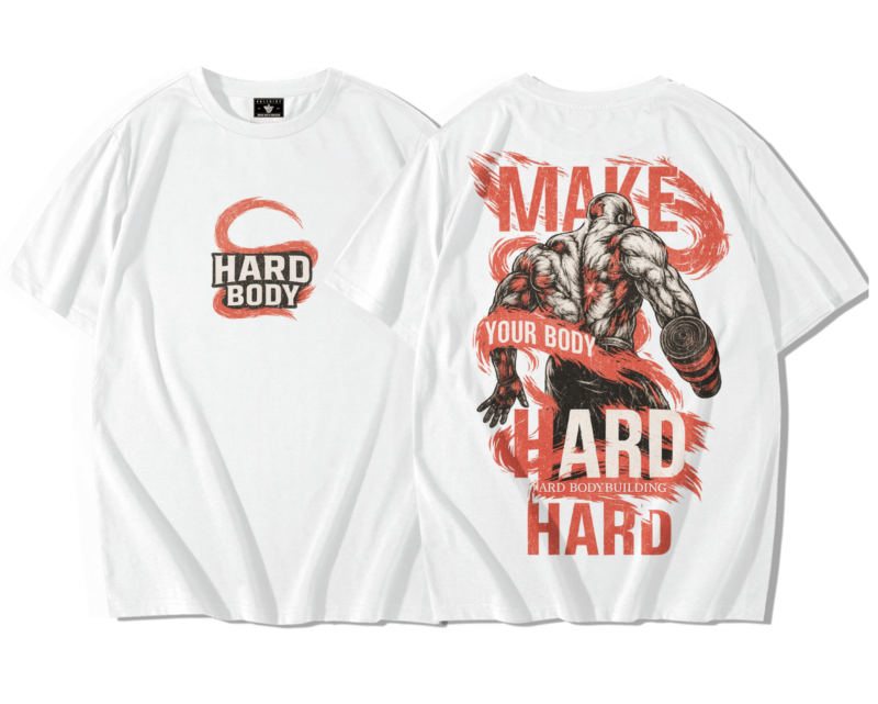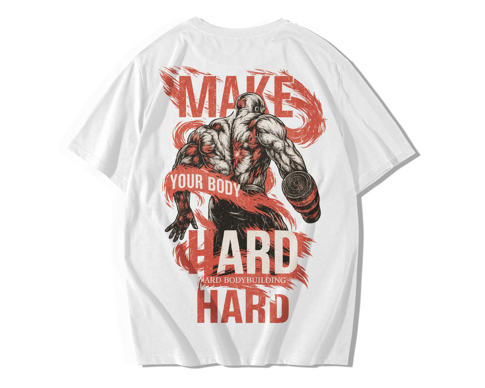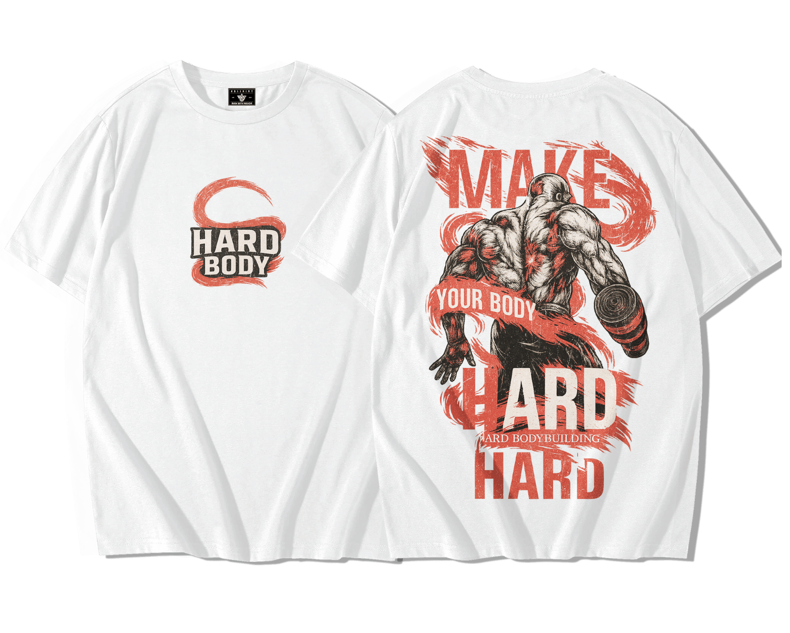 Le HardBody Oversize Tee ne se contente pas de te vêtir : il te représente. Il traduit un état d’esprit centré sur la discipline et la volonté. Chaque détail, chaque courbe du visuel et chaque mot imprimé rappellent la dure réalité : on devient fort en forgeant son corps, mais aussi son mental. Le message “Make Your Body Hard” incarne cette philosophie — directe, sans détour, fidèle à la culture gym streetwear.
