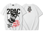 Sur le dos, l’inscription “The Real Never Die” résonne comme une promesse. Elle célèbre l’éternité des esprits vrais — ceux qui laissent une trace, même après leur départ. Ces mots rappellent que 2PAC n’est pas mort : son influence, son message et sa voix vivent à travers des générations. Ce t-shirt immortalise cette énergie, ce feu intérieur, cette puissance tranquille qui continue d’inspirer les âmes rebelles et les cœurs sincères.