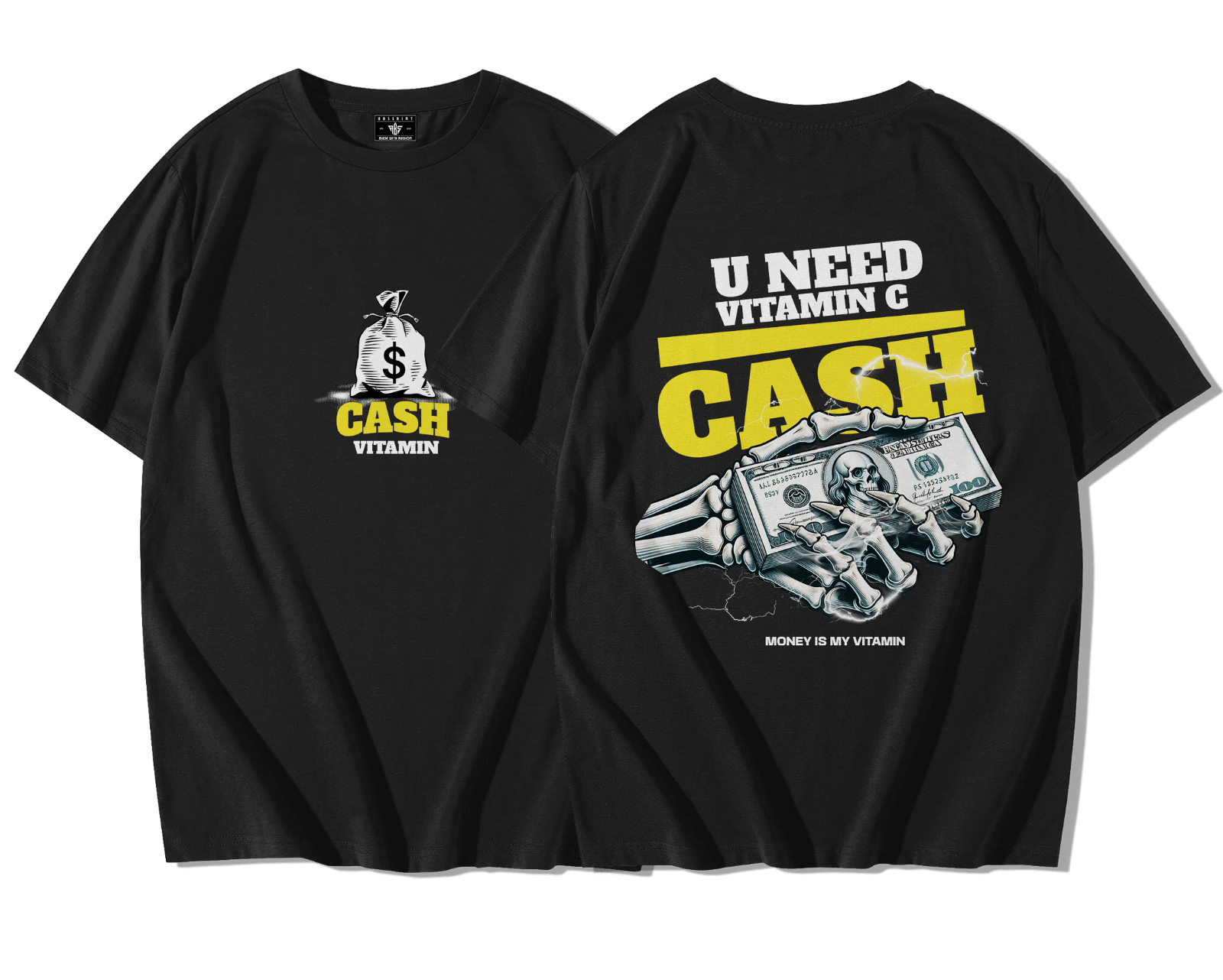 À l’avant, un visuel compact “CASH VITAMIN” sert de signature.