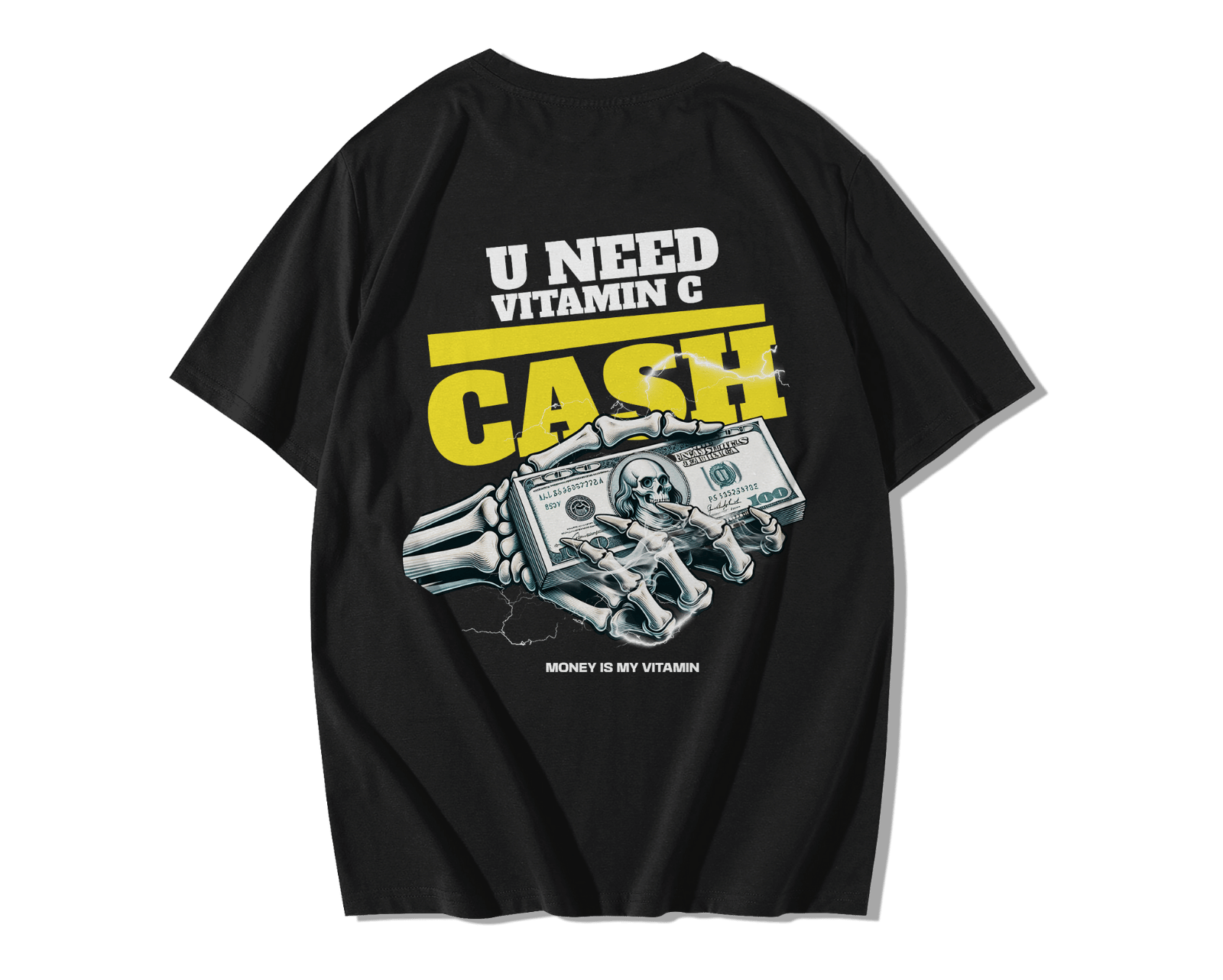 Au dos, le message U NEED VITAMIN C — CASH s’impose avec un graphisme fort :