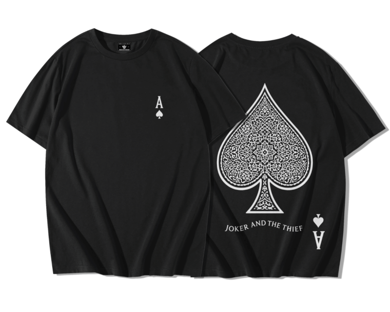 Le Silent Ace Oversize Tee s’inspire de l’univers des cartes et du symbolisme puissant de l’As de pique, reconnu comme un signe de force, autorité et destin.