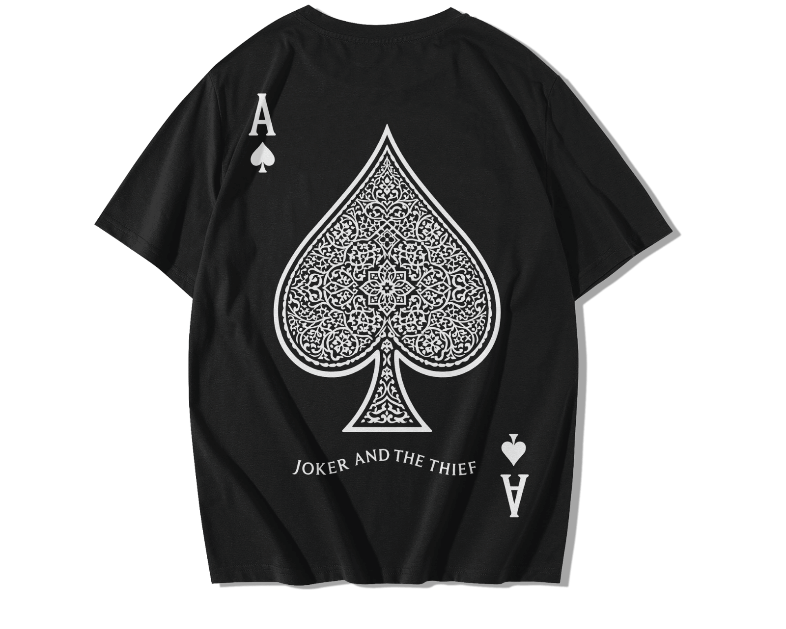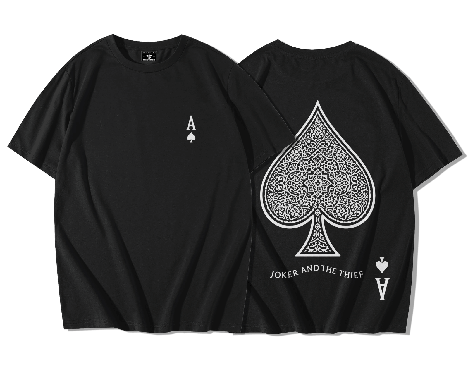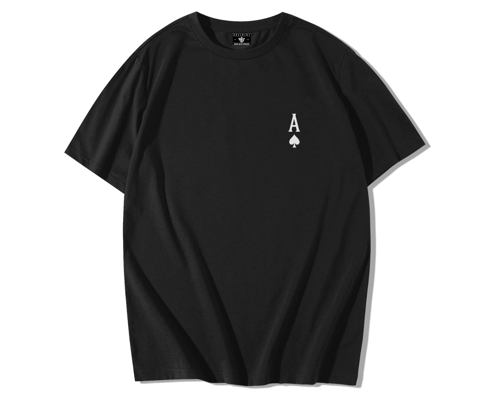 Mots-clés puissants : ace of spades t-shirt — minimalist streetwear — luxury oversized tee — black aesthetic clothing — symbolic fashion — premium streetwear — poker style outfit — dark minimal fashion.